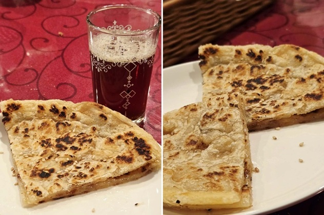 アラブのゴマつきのホブスのようなパンは、外はパリパリ、パンとパイ生地の間のような食感。砕いたクルミとハチミツがサンドされています。人工的ではないほんのりとしたハチミツの甘さがちょうどよい感じでした。