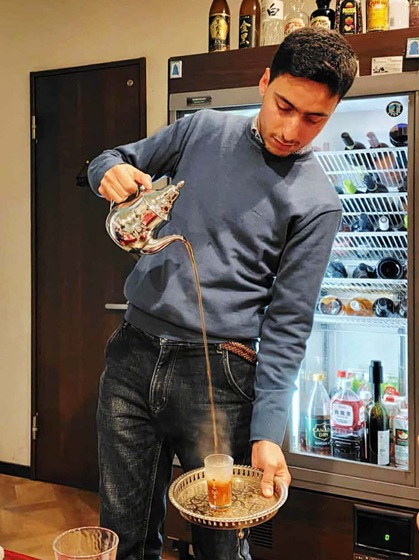 ミントティーは、高いところからサーブされます。